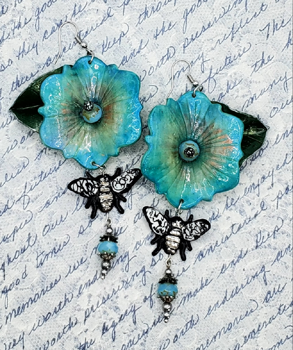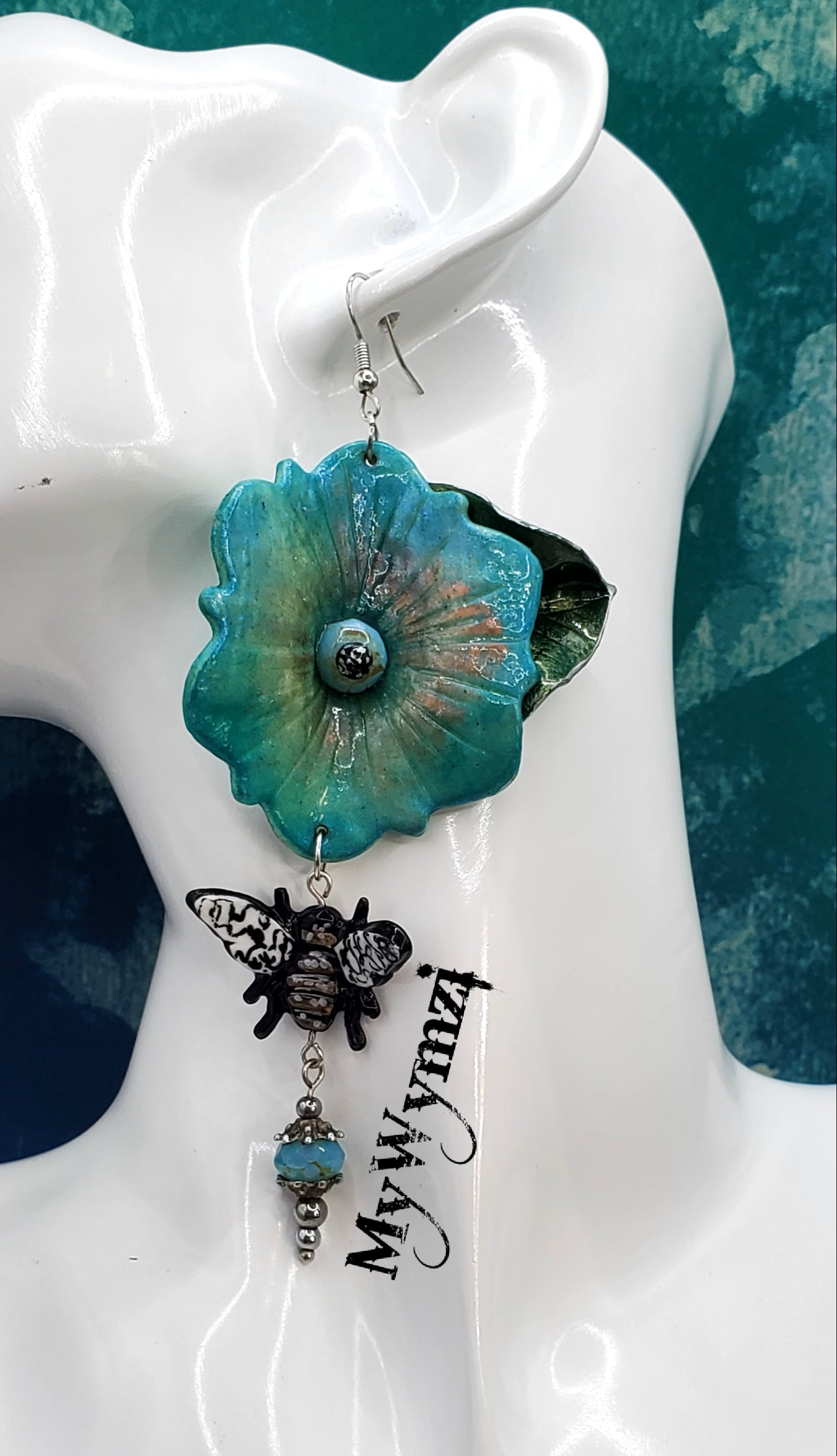 These Flower & Bee shaped Clay, Beads & Metal earrings are perfect to be worn when dancing, for Date night, simply for Fun & BEST if making a Statement!!!